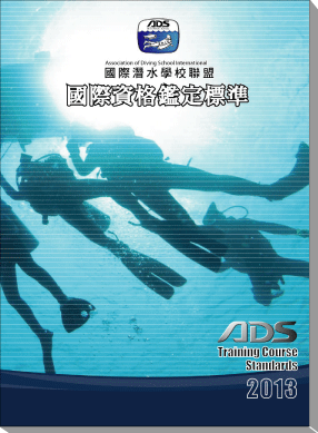 ADS INTERNATIONAL 總部,綜合潛水員在潛水技能的學習項目,知識的多寡和潛水經驗的累積等各相關條件,將潛水員分類成 : 曼波級浮潛員、企鵝級浮潛員、海豚級浮潛員、初級潛水員、入門級潛水員、高級潛水員、救援潛水員、潛水長、浮潛教練、一星助理教練、二星指導教練、三星督導教練、四星榮譽教練,並且按照不同等級的學科、術科進階訓練課程內容、訓練課程基本時數、參加資格、測驗內容及容許活動範圍等細部要求,依照不同的級別,詳細歸納分類,讓教練輕鬆享有收放自如的訓練參考準則。2012年新改版國際資格鑑定標準,除了修正必要技能知識之外,更引進QR二維條碼辨識系統。讓從事潛水教學業務的專業潛水教練能夠更方便認識 ADS 教材的特色。