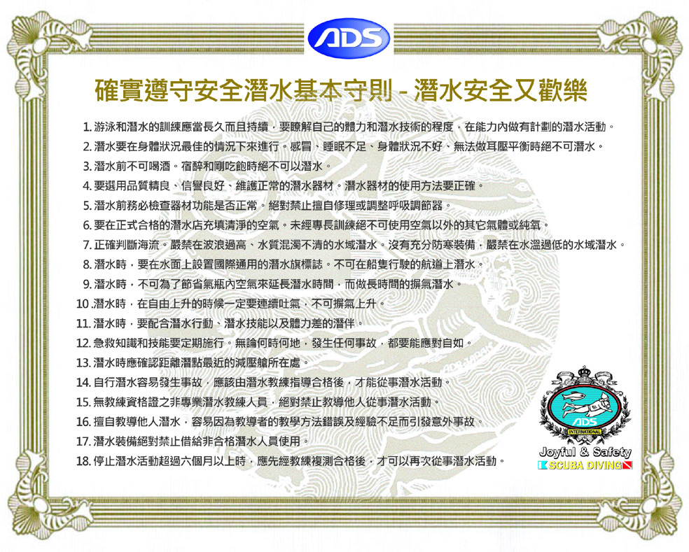 2014/06/04確實遵守安全潛水基本守則 - 潛水安全又歡樂 回上一頁