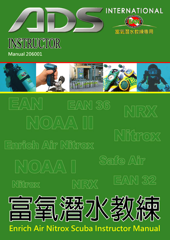 藉著本教材及ADS的訓練系統,您除了會訝異富氧氣體的好處,更會徹底改變您的潛水習慣,讓您的下一趟潛水,有更多重的呼吸氣體可以選擇。讓新加入潛水活動的參與者,幸運的獲得潛水專業人士最先進的啟發,以高科技的氣體駕馭知識來尋求安全與歡樂的潛水樂趣。我們確信本教材是一本可以有效幫助您,讓您輕鬆駕馭富氧潛水教學的潛水工具書,這本教材更將是一本富氧潛水愛好者與潛水教練的最好教材。
